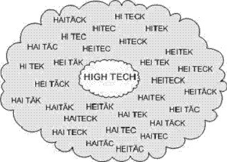 In der Folge ergibt sich nach dieser konkreten Rechtsprechung, dass der Schutzbereich eines beschreibenden oder sich an eine beschreibende Angabe anlehnenden Zeichens wie „HEITEC“ durchaus groß anzusetzen ist und auch andere an die beschreibende Angabe anlehnende Zeichen erfasst. Er geht jedoch nicht so weit, dass die freihaltebedürftige Angabe „High Tech“ selbst in den Schutzbereich fällt. Der Schutzbereich des Zeichens "HEITEC" wird mit der nachfolgenden Darstellung unter ausschließlicher Berücksichtigung klanglich mit "HEITEC" offensichtlich identischen Abwandlungen veranschaulicht: