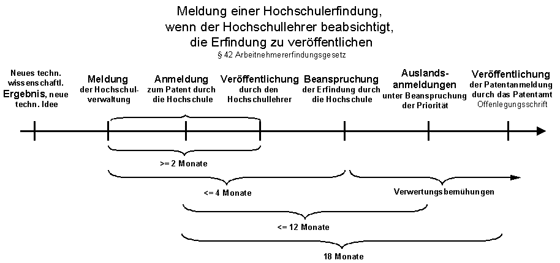 - Der Professor, Dozent oder wissenschaftliche Mitarbeiter darf seine Erfindung nur veröffentlichen, nachdem er zwei Monate vor der Veröffentlichung den Dienstherrn informiert hat.